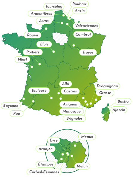 Villes présélectionnées pour votre projet.